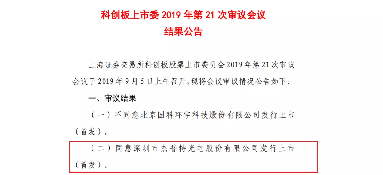 9月5日,上交所發(fā)布科創(chuàng)板上市委第21次審議會議結果公告,同意深圳市杰普特光電股份有限公司的上市申請,杰普特成為無錫創(chuàng)投集團基金在科創(chuàng)板上市的被投企業(yè)。